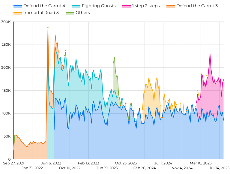 Early 2025, casual title 1 Step 2 Steps lifted Feiyu’s baseline revenue without big UA bills. Classic Feiyu: sticky live-ops, low marketing. Nobody reacted. We could have added more, but given the low liquidity of that stock, we did not take the risk. A shame, because at that point the stock was trading in the low HK$0.20s, a third of today’s price. And that’s just a few months back.