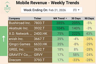 Mobile Gaming Stocks - WK5’26: Akatsuki & Gravity top the charts